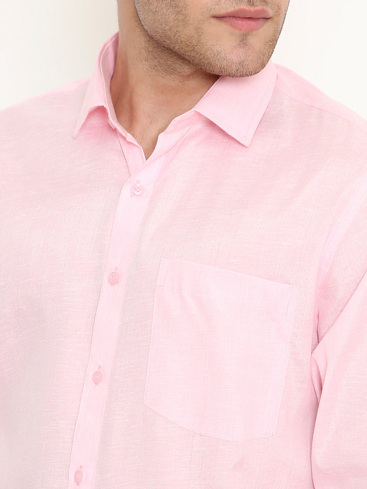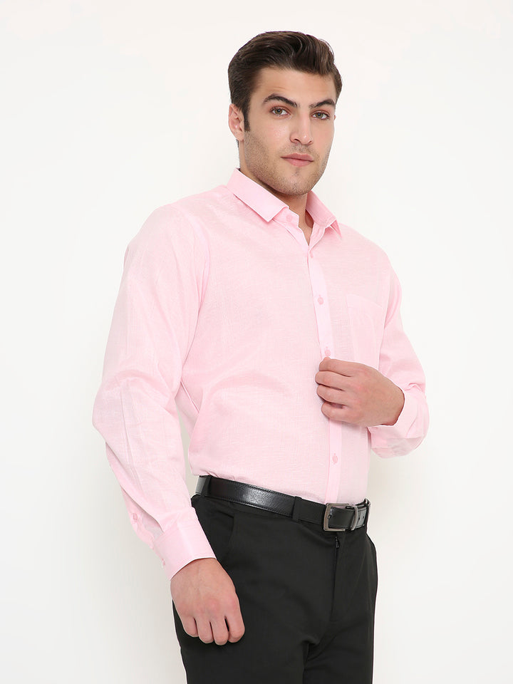 Poly Viscose Shiny Solid Slim Fit Shirt in Pink