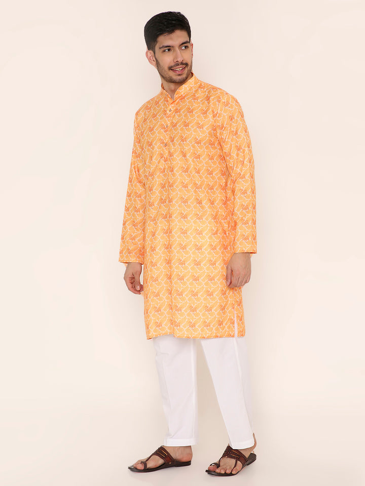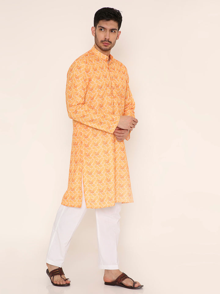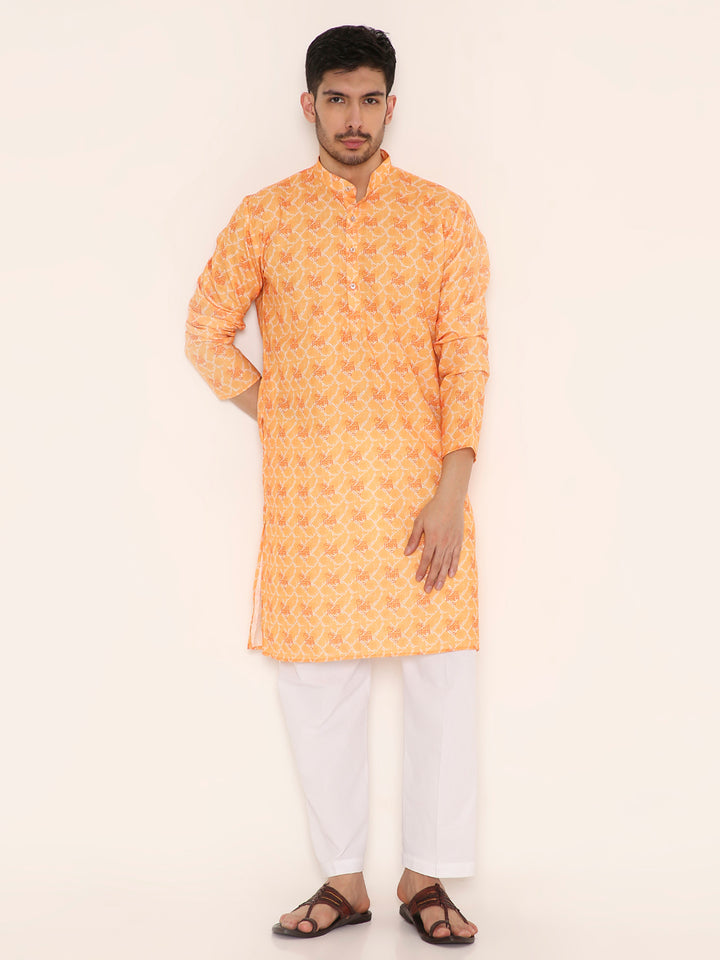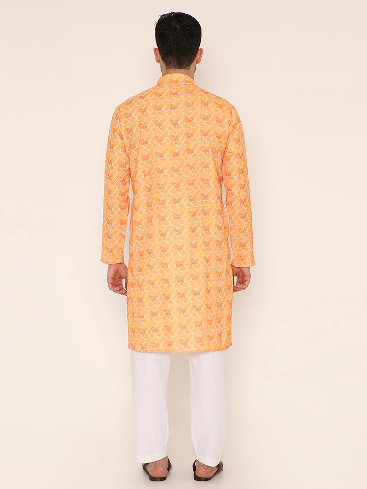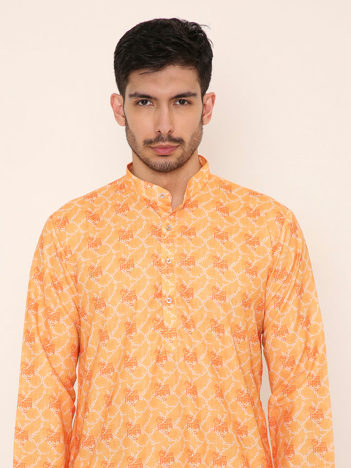Poly Viscose Regular Fit Om Namah Shivay Print Kurta Pyjama Set in Light Orange