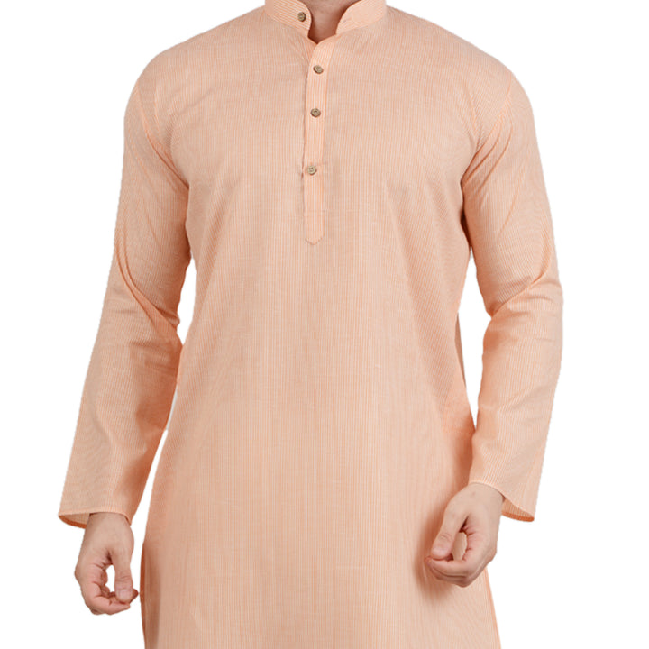 Striped PolyBlend Kurta and Cotton Pyjama Set in Orange
