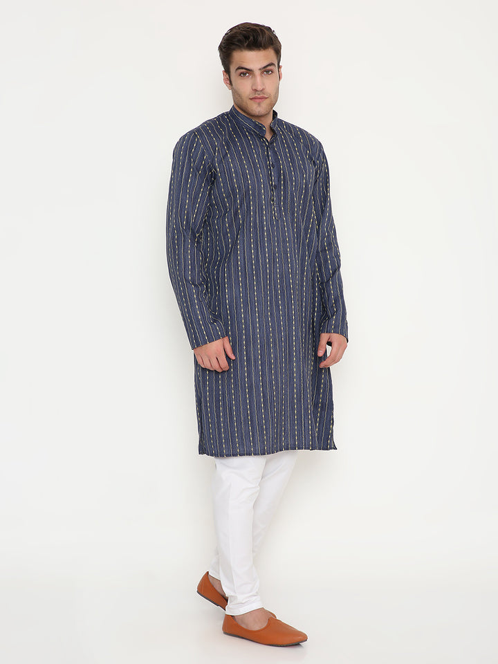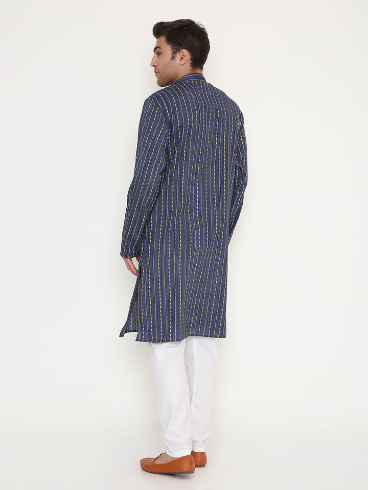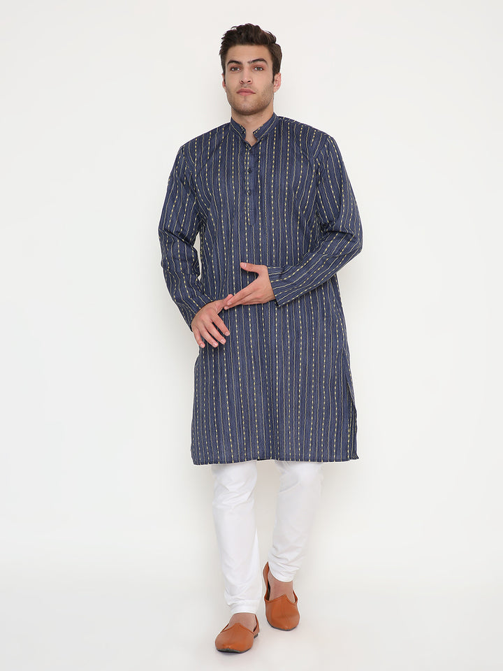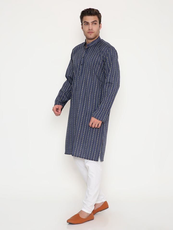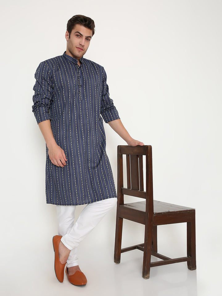 Poly Viscose Regular Fit Ethnic Design Kurta in Blue