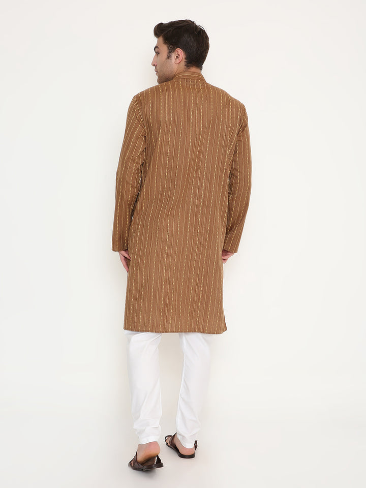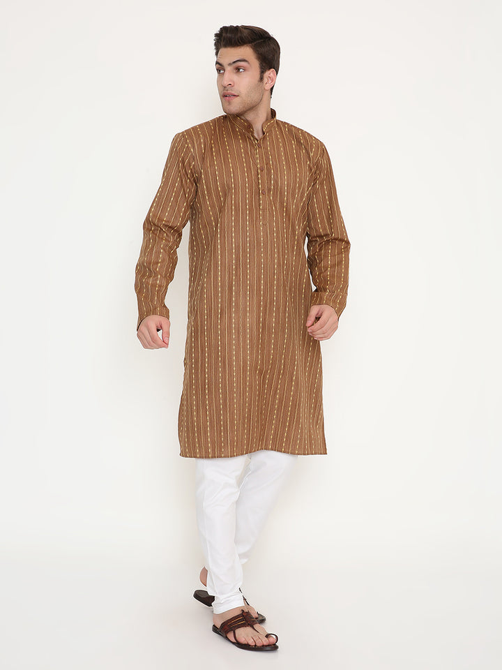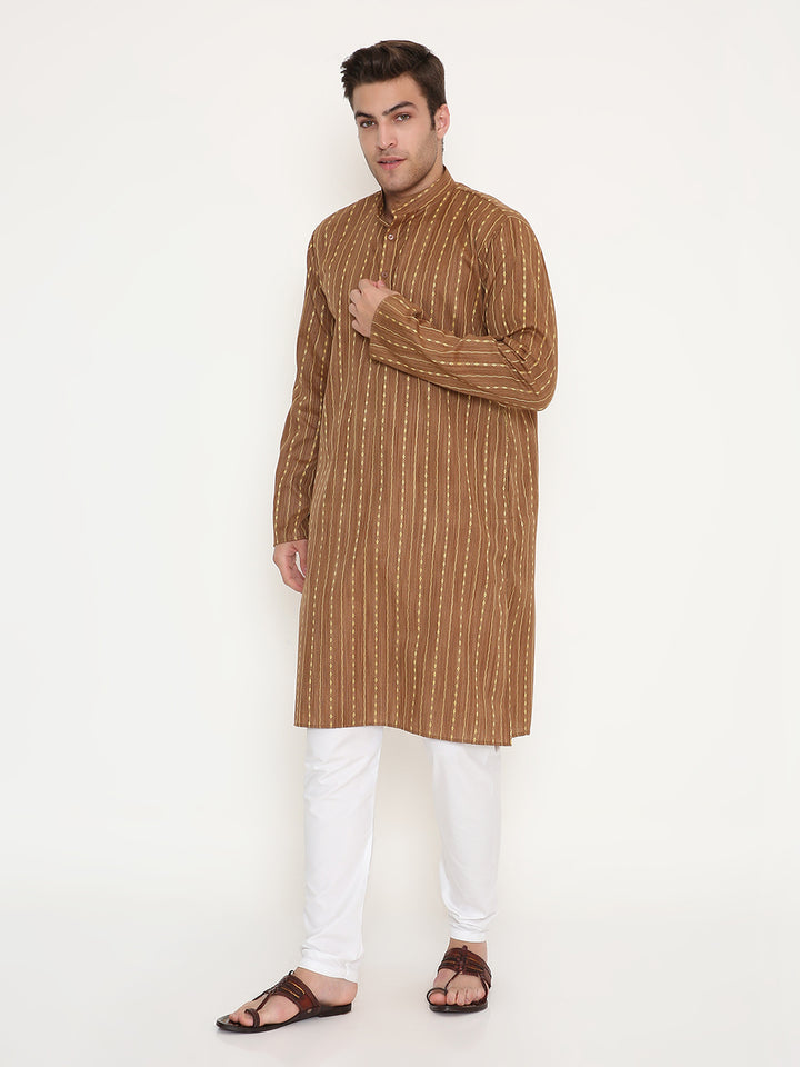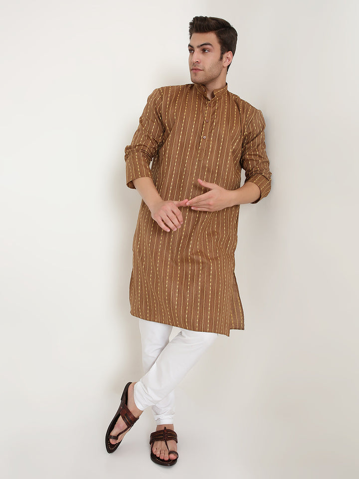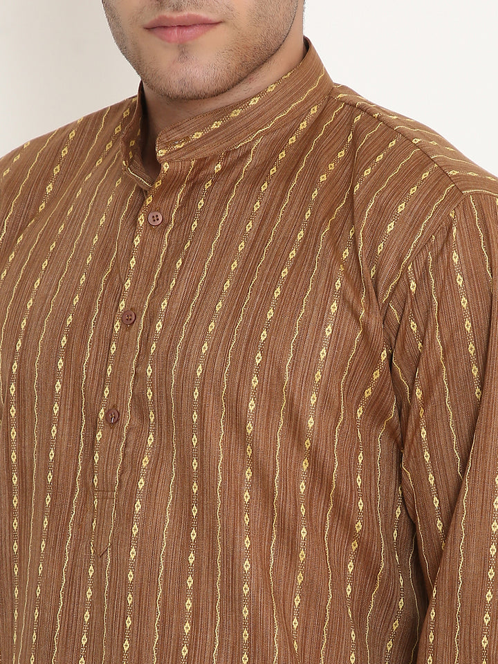 Poly Viscose Regular Fit Ethnic Design Kurta in Brown