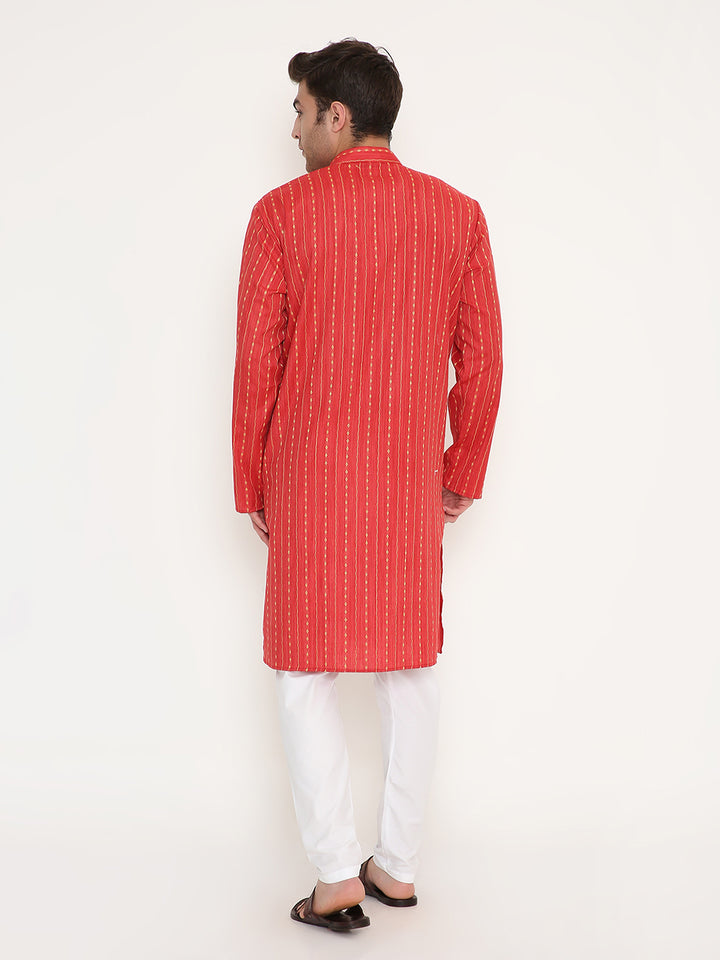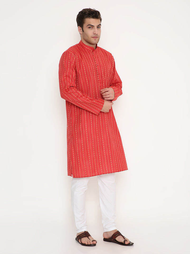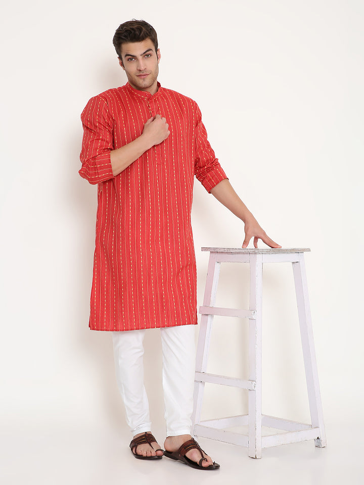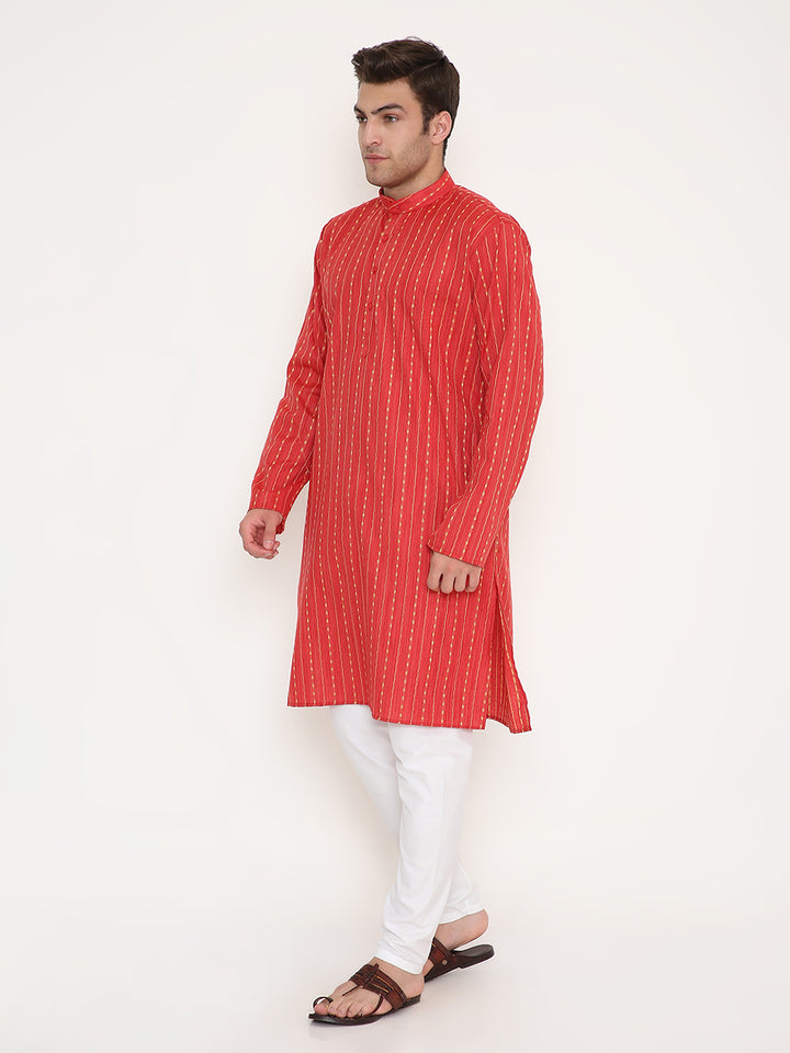 Poly Viscose Regular Fit Ethnic Design Kurta in Red