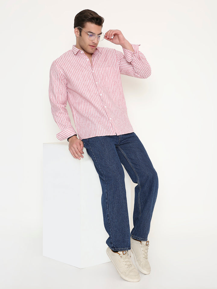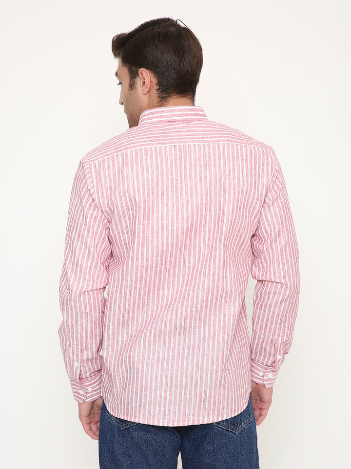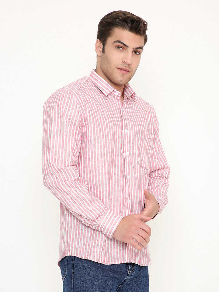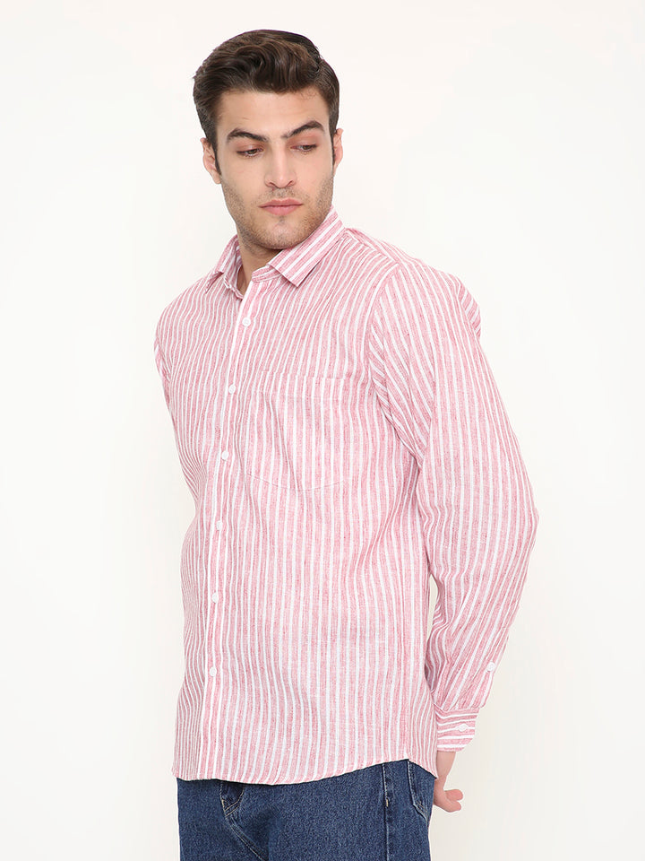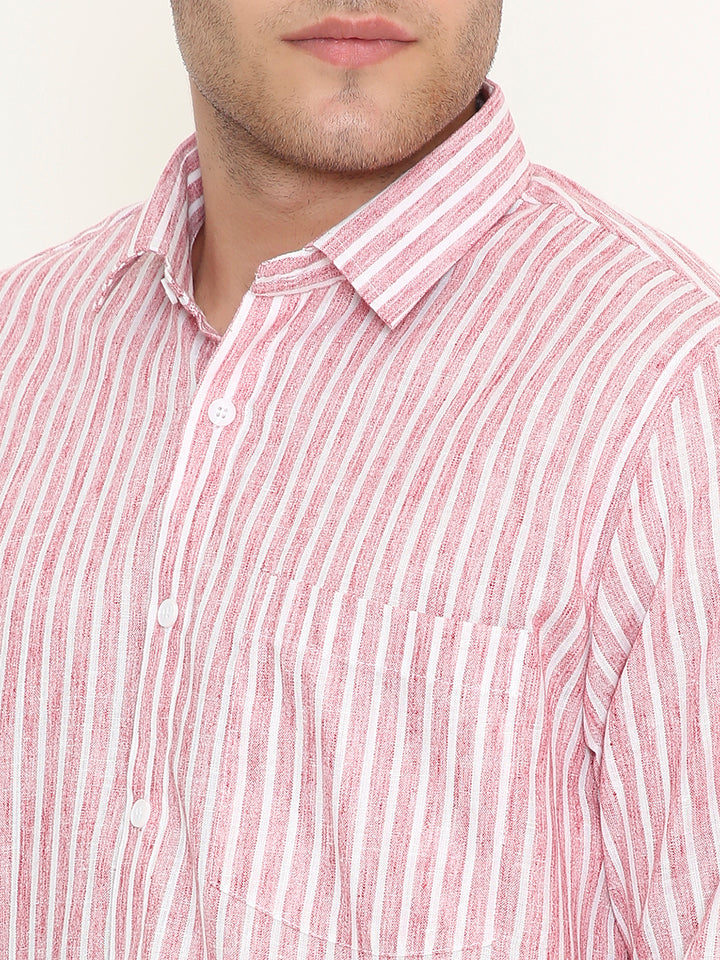 Poly Viscose Slim Fit Vertical Striped Shirt in Red