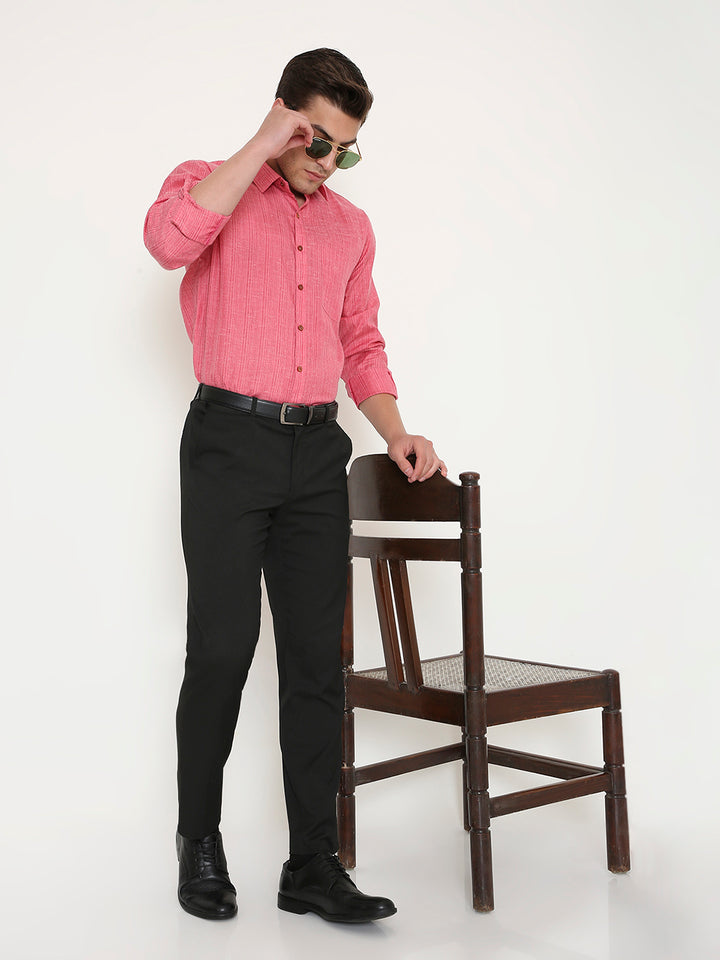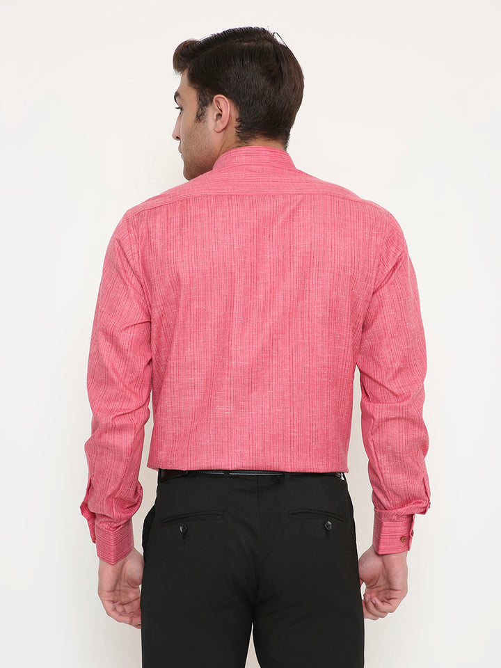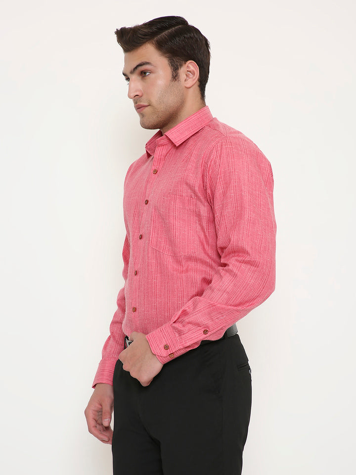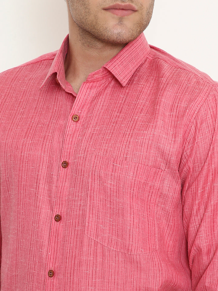 Poly Viscose Slim Fit Vertical Striped Shirt in Dark Pink