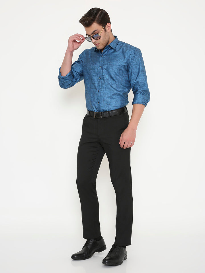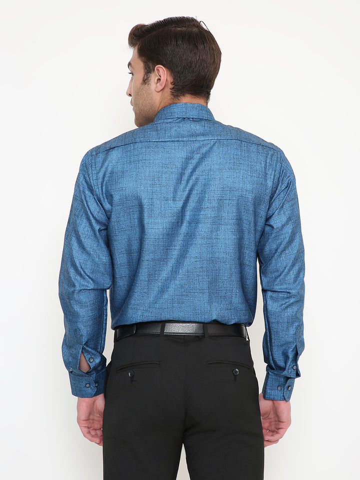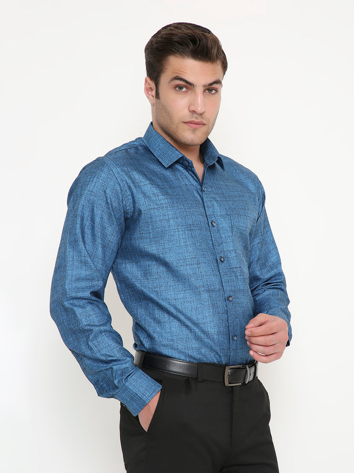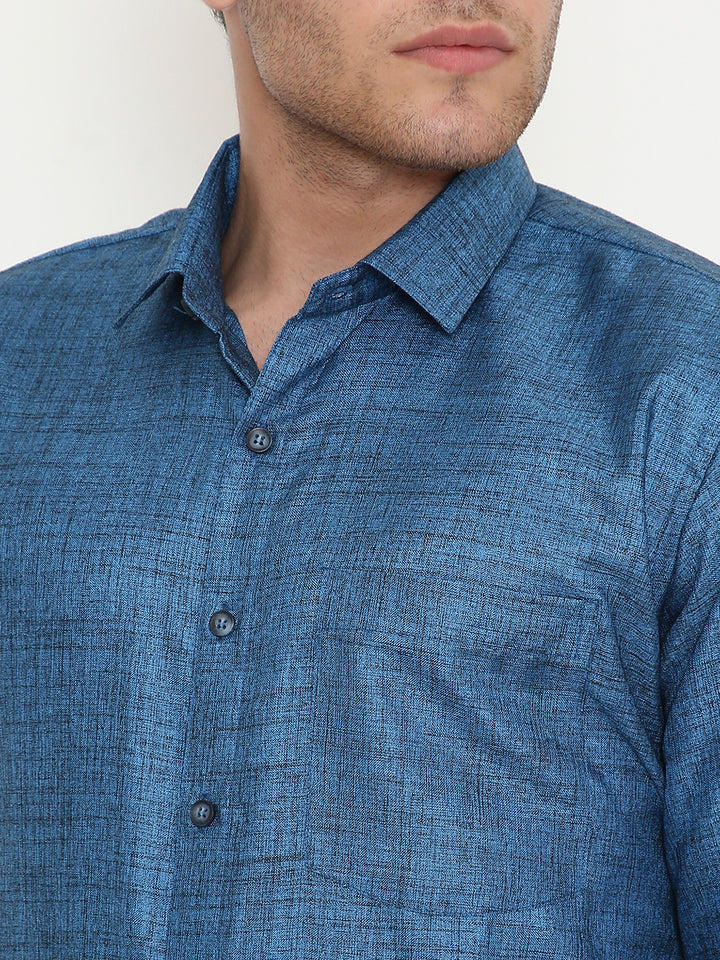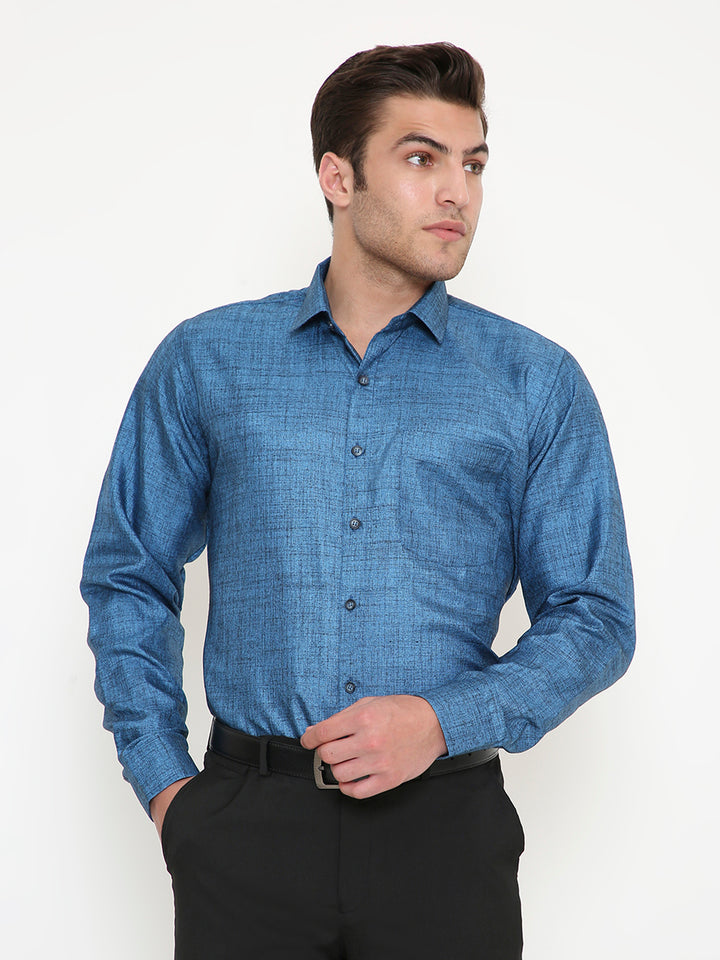 Poly Viscose Slim Fit Solid Shirt in Blue