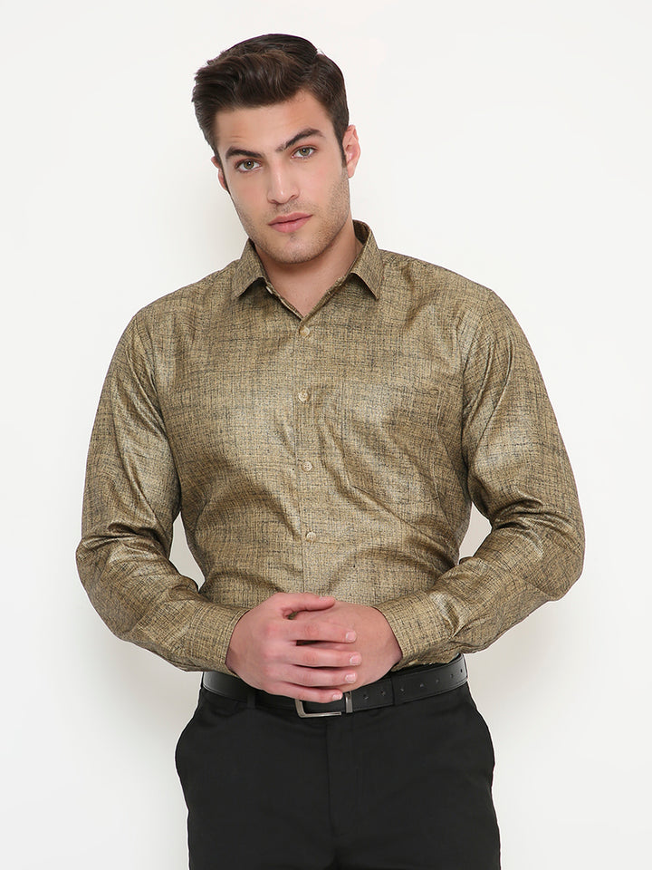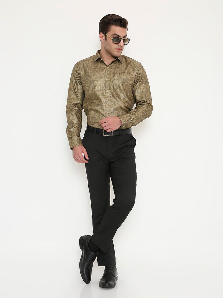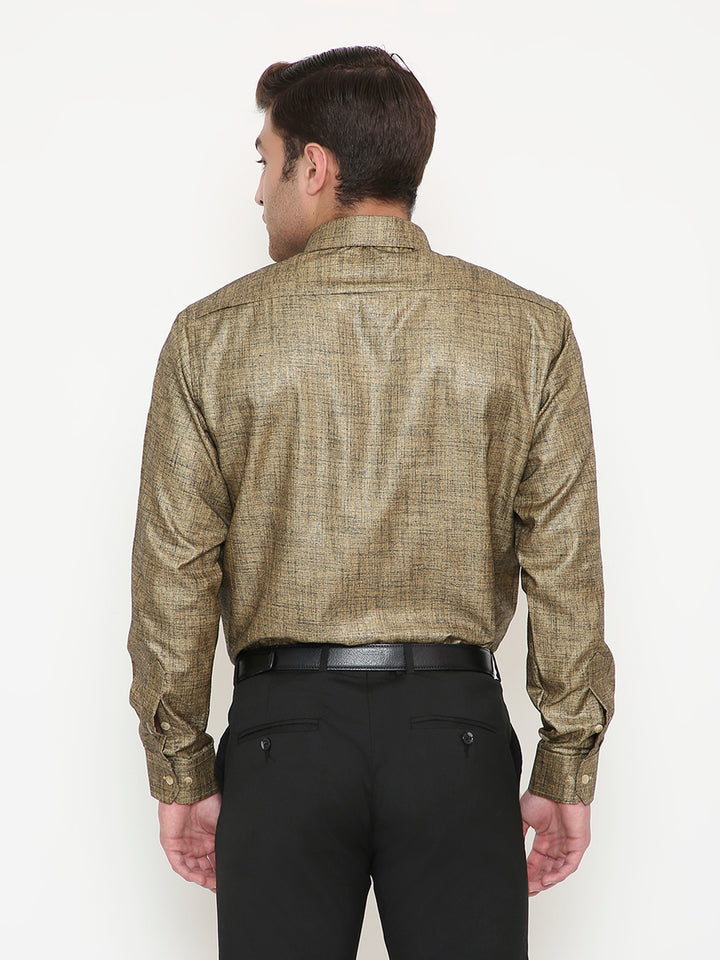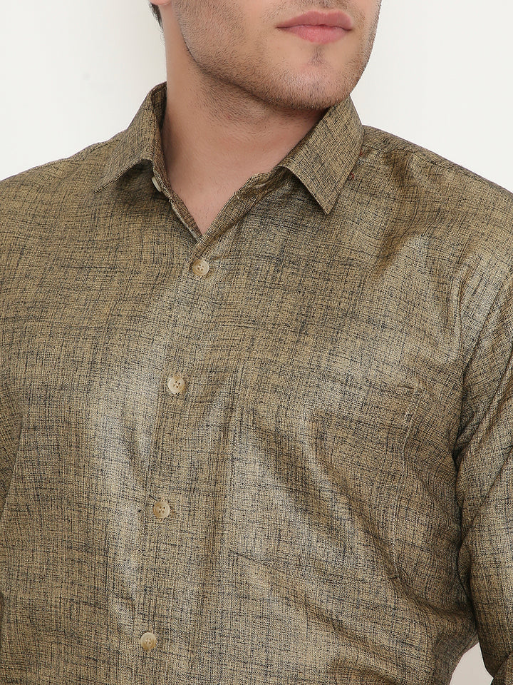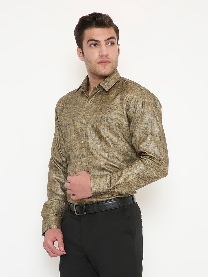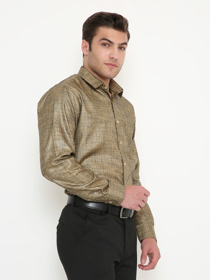 Poly Viscose Slim Fit Solid Shirt in Gold