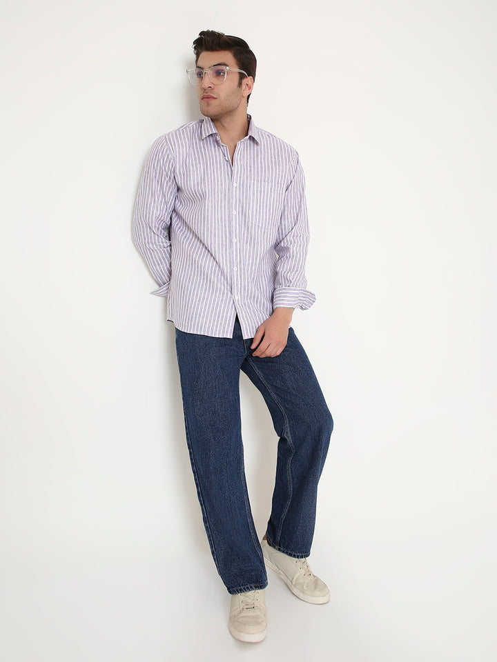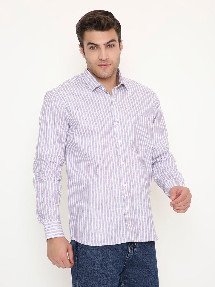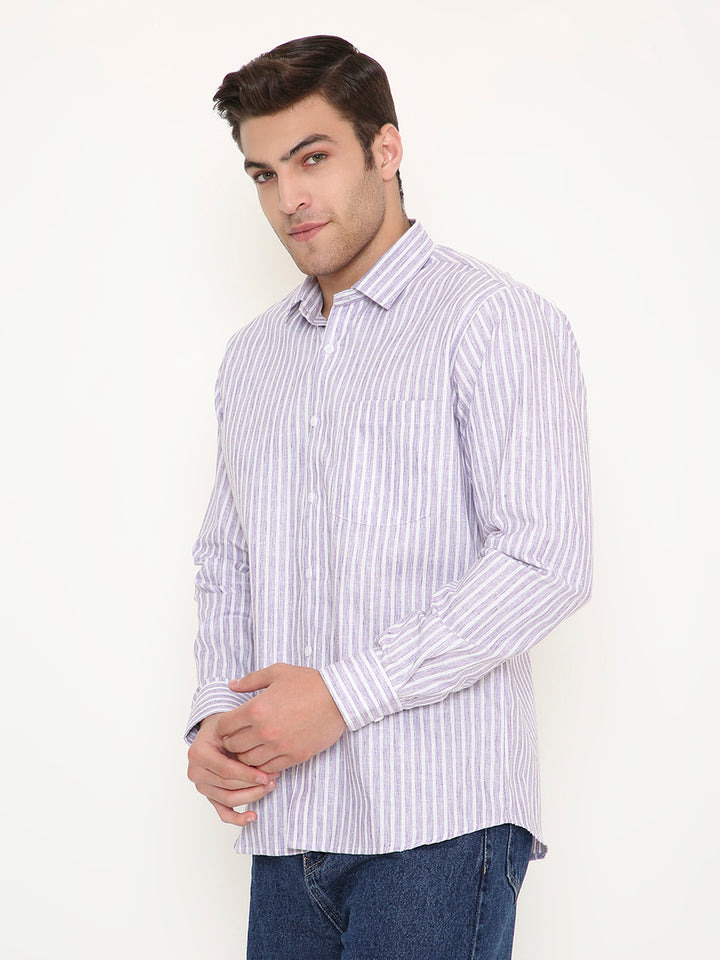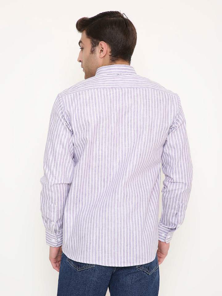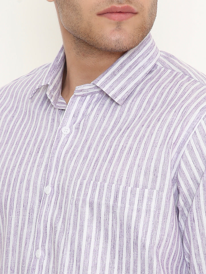 Poly Viscose Slim Fit Vertical Striped Shirt in Purple