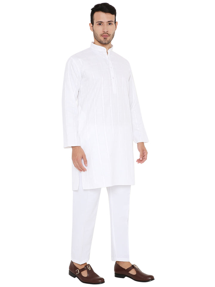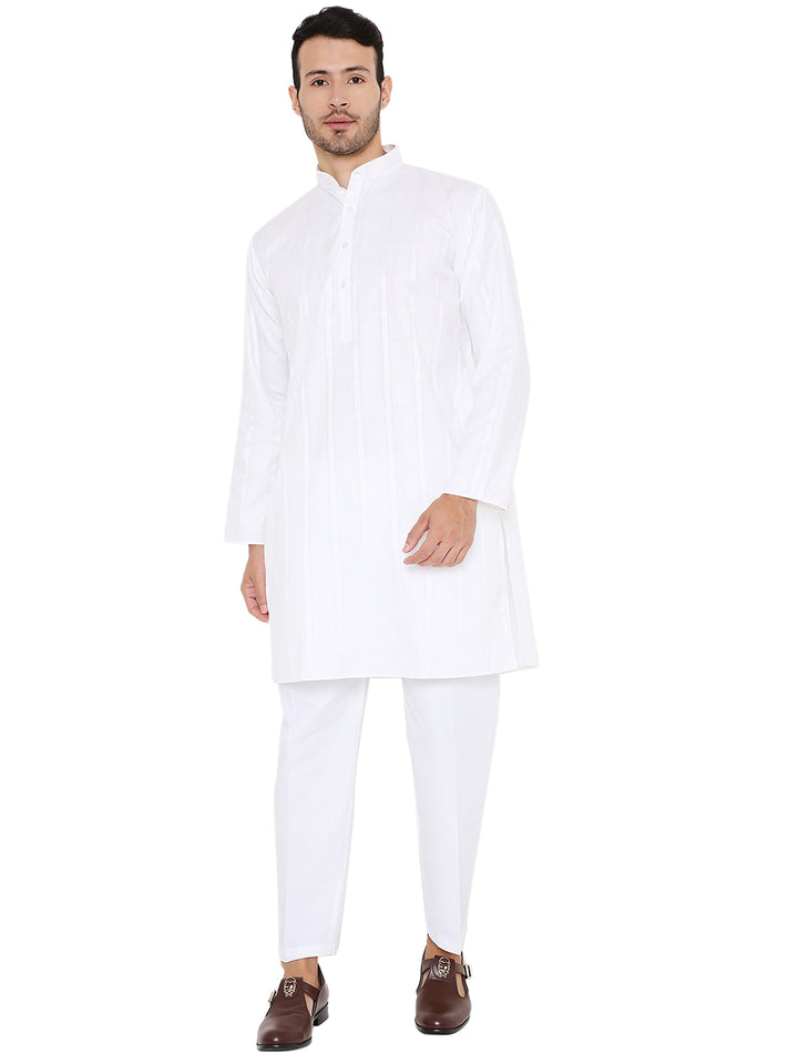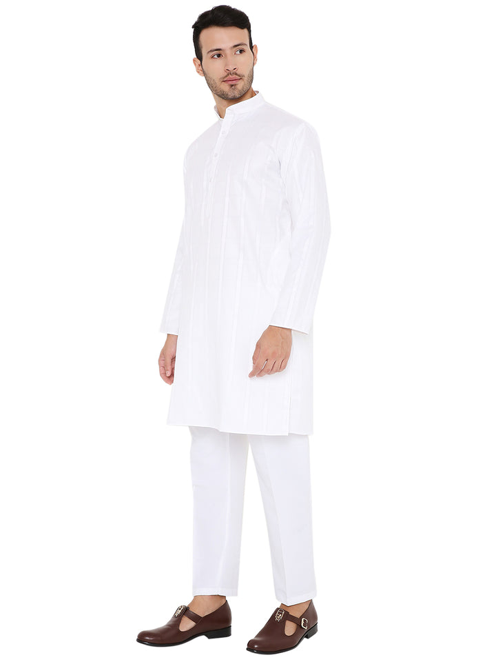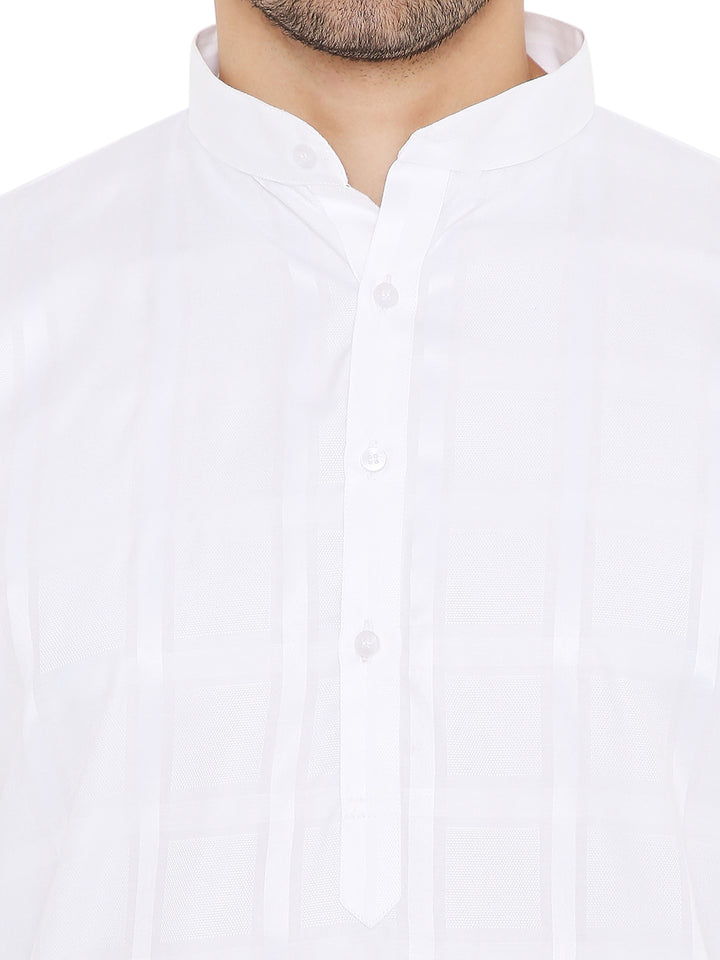 Poly Cotton Self Design Kurta in White