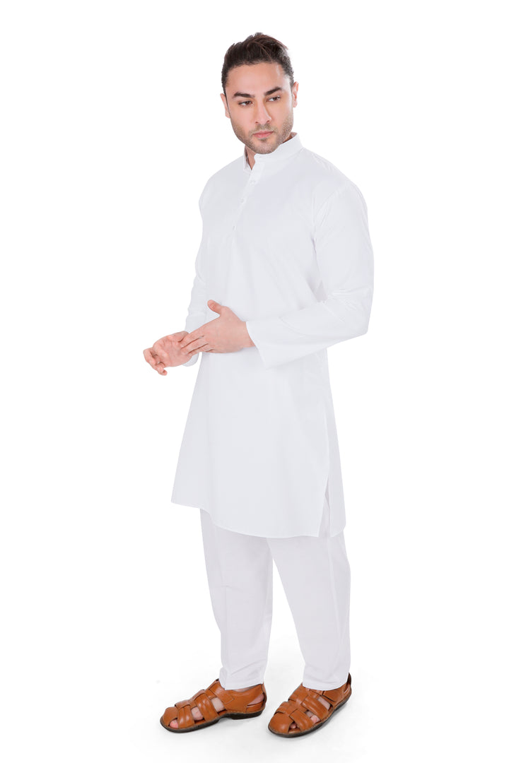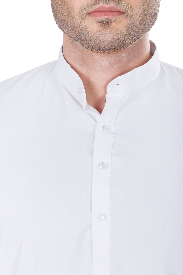 – Band collar & full sleeves for a classic fit