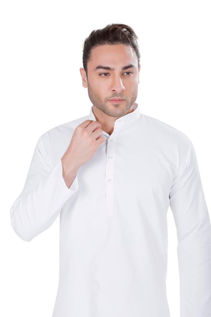 Self Design Cotton Blend Kurta in White
